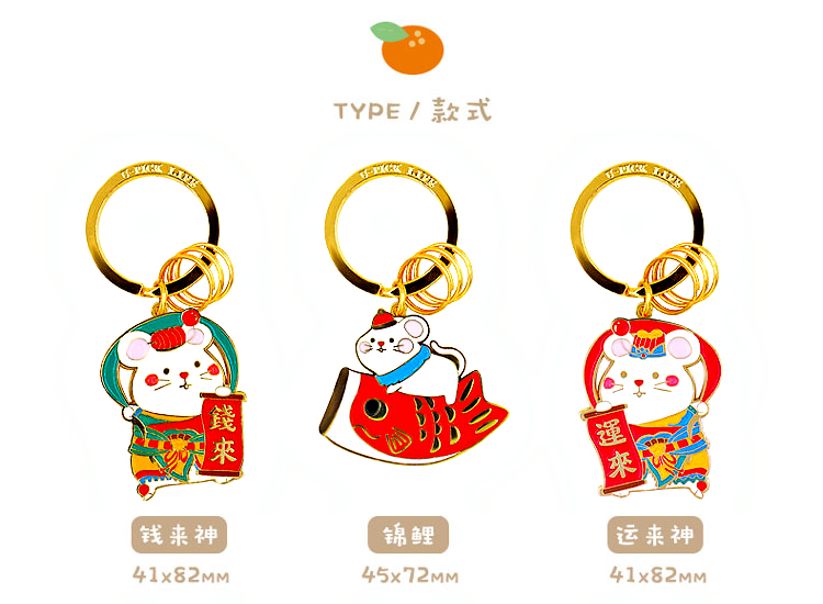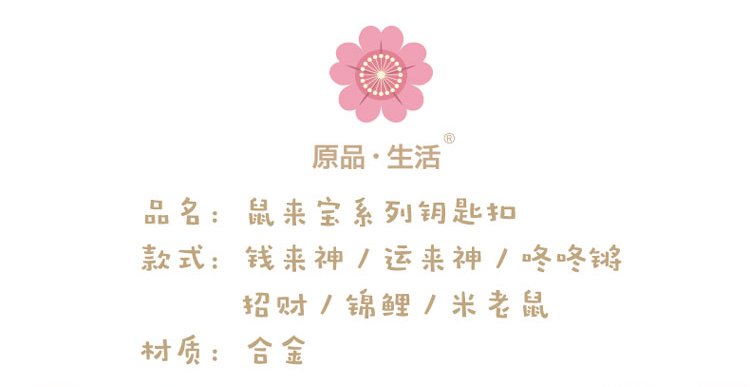原品鼠来宝系列钥匙扣-钱来神/运来神/咚咚锵/招财/锦鲤/米老鼠