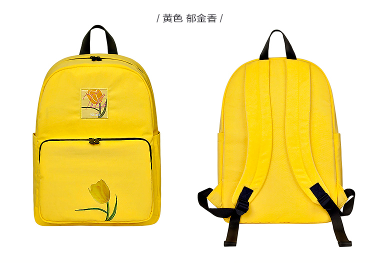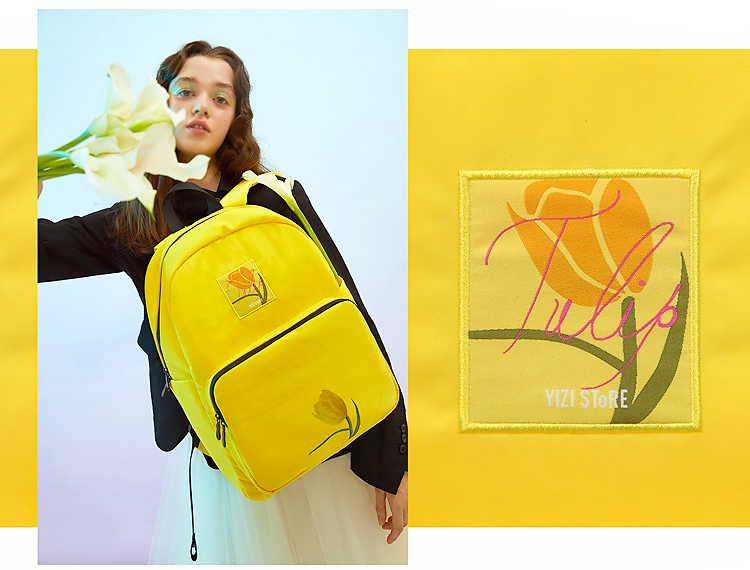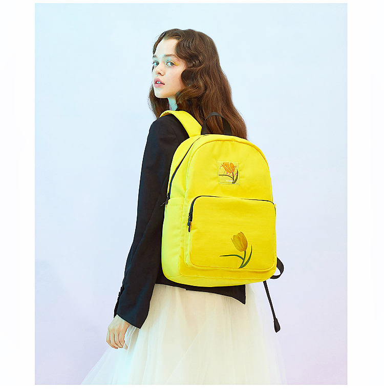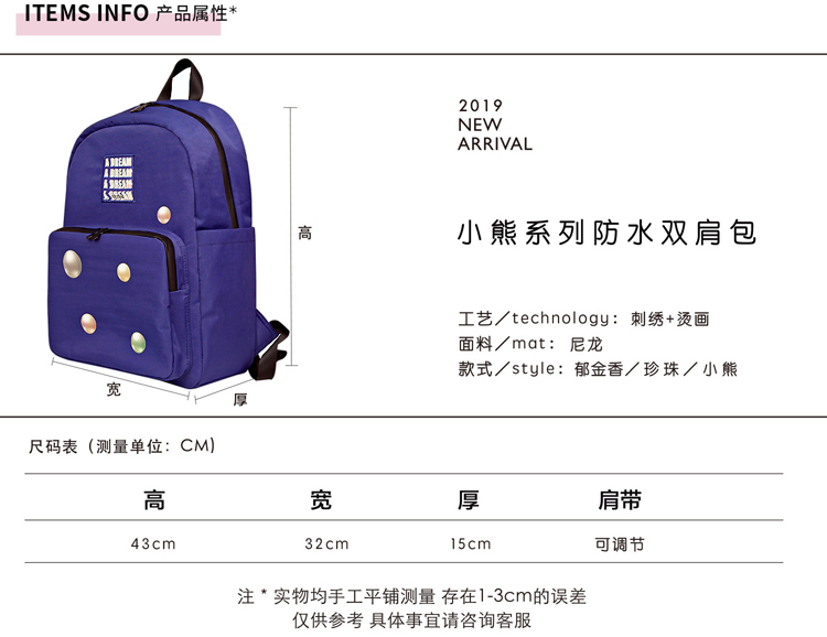 YIZISTORE刺绣小熊系列防水双肩包-蓝色小熊/黄色郁金香/紫色珍珠