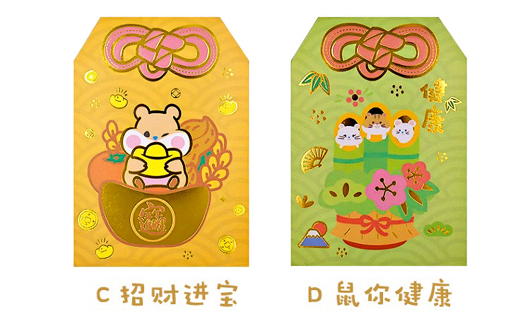 原品大号彩色鼠年礼金袋-大吉/聪明伶俐/开心健康/心想事成/子气东来/迎春接福