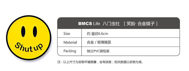 八门虫社笑脸Shut up合金镀黑镜子