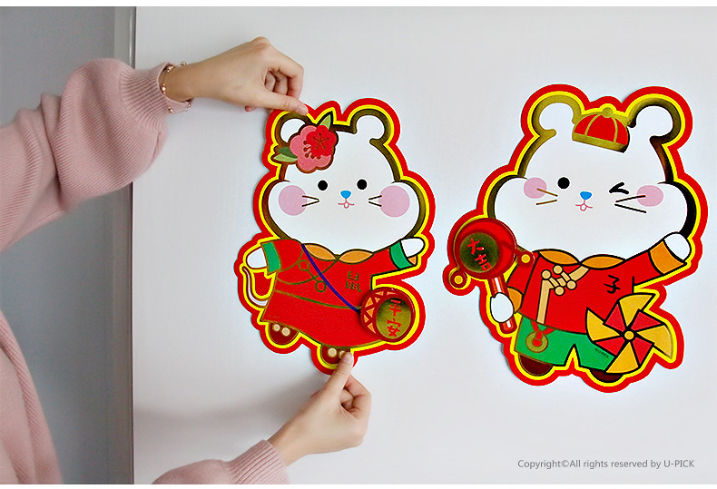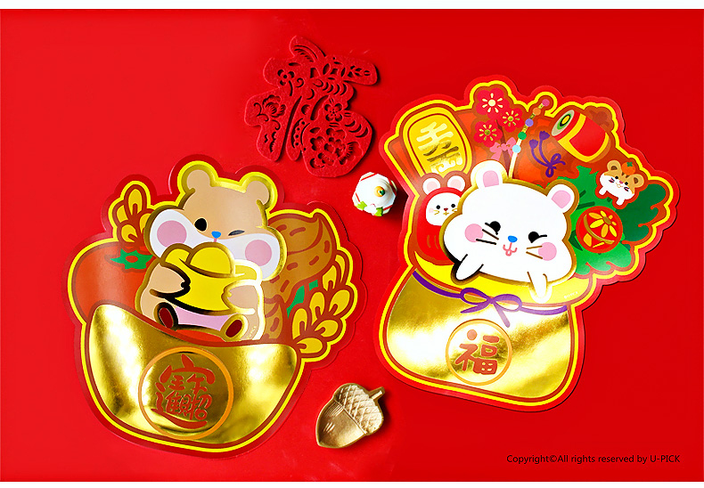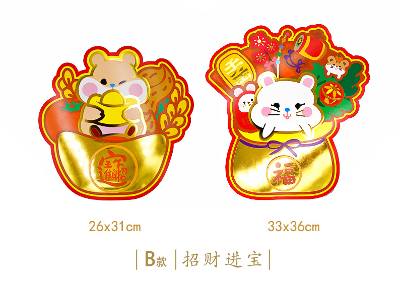 原品鼠年异形立体对装门贴-平安大吉/招财进宝