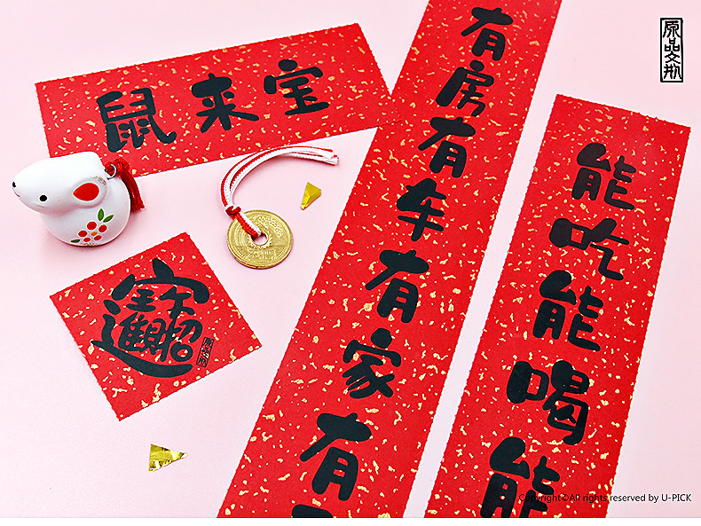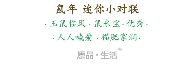 原品鼠年迷你小对联-玉鼠临风/鼠来宝/优秀/人人喊爱/猫肥家润