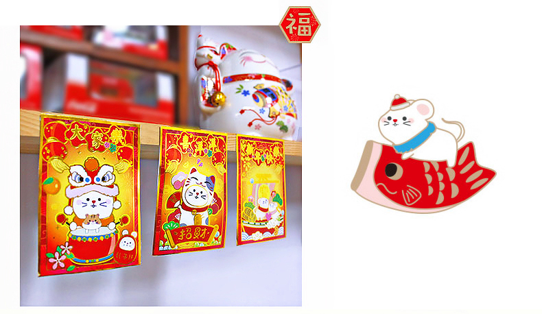 原品鼠年刺绣胸针-炮仗鼠/来福鼠/水仙鼠