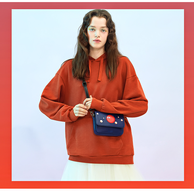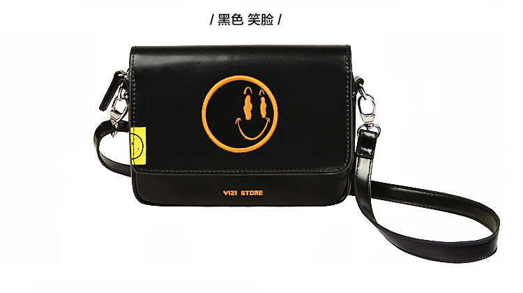 YIZISTORE刺绣渐变单肩斜挎小方包-粉色桃子/蓝色番茄/黑色笑脸