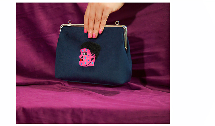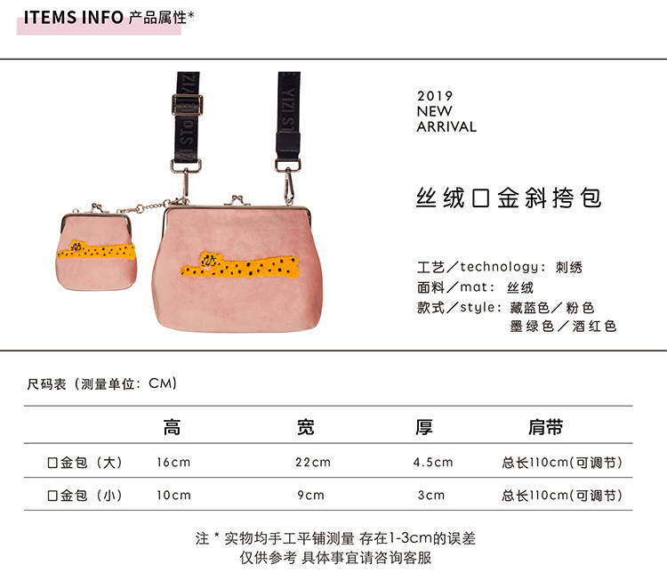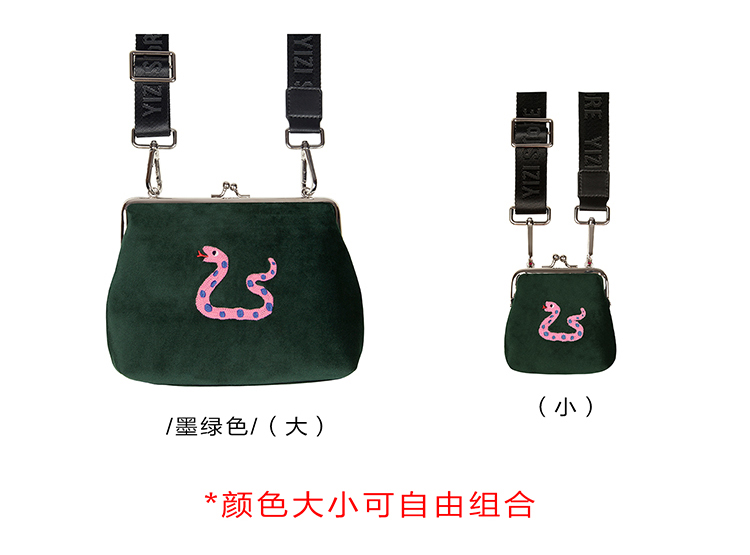 YIZISTORE手工刺绣丝绒斜挎单肩口金包-酒红色/粉色/藏蓝色/墨绿色
