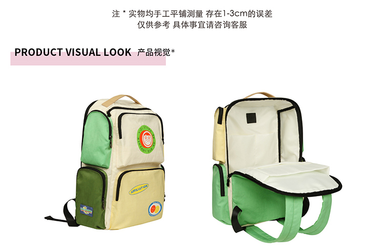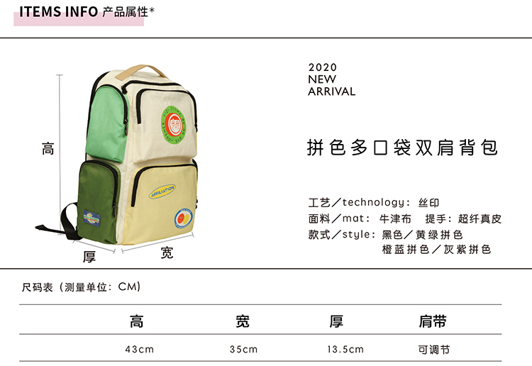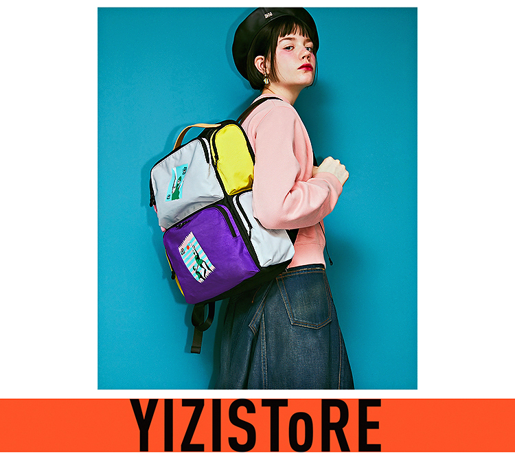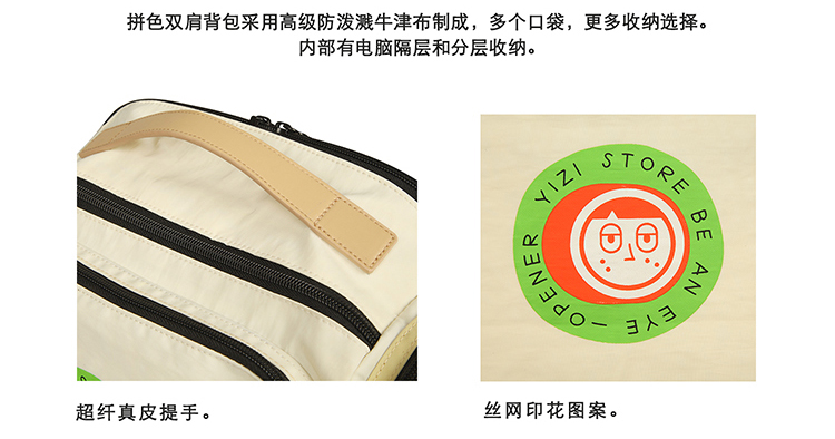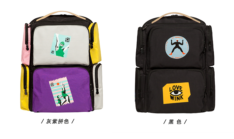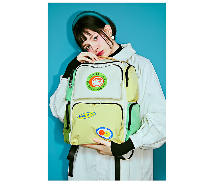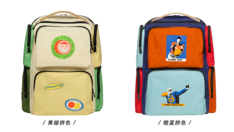 YIZISTORE拼色牛津双肩包-黑色/黄绿/橙蓝/灰紫