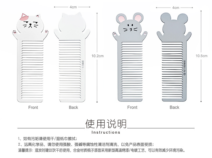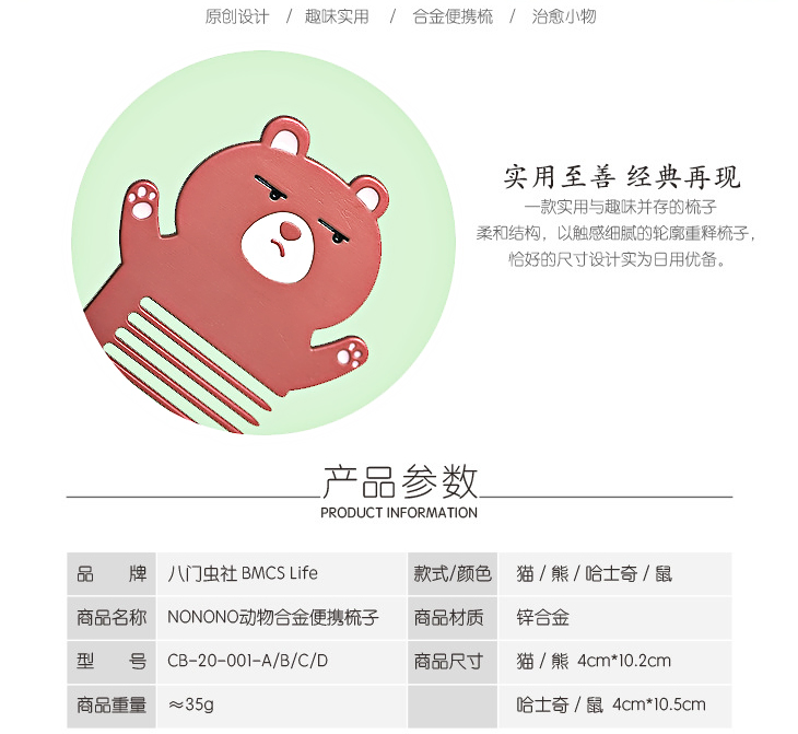 八门虫社NONO动物合金便携梳子-猫/老鼠/哈士奇/熊