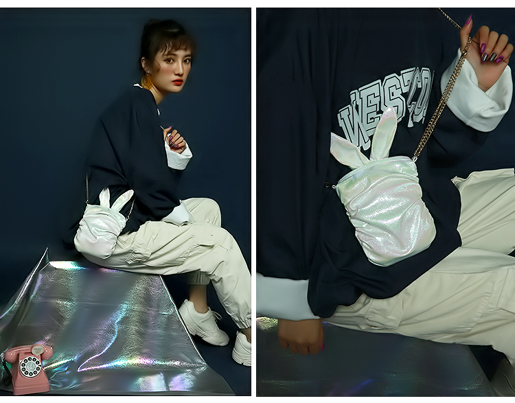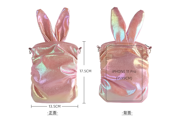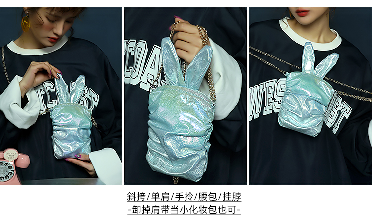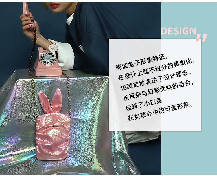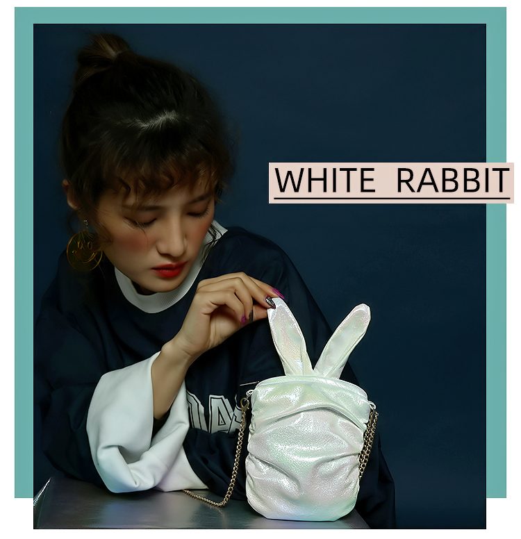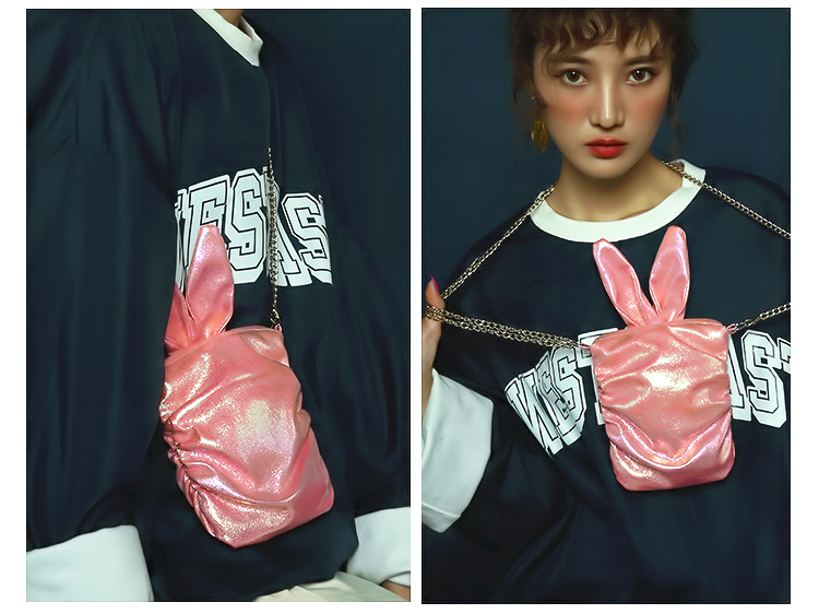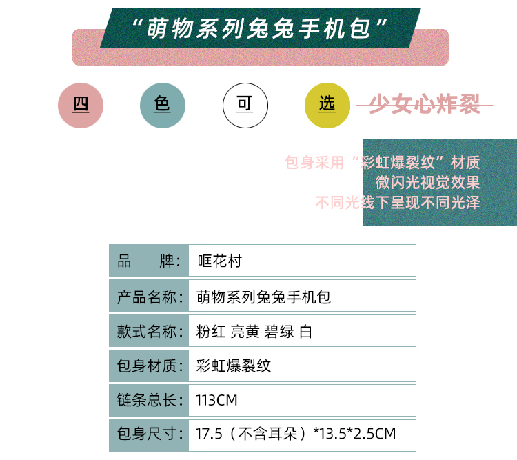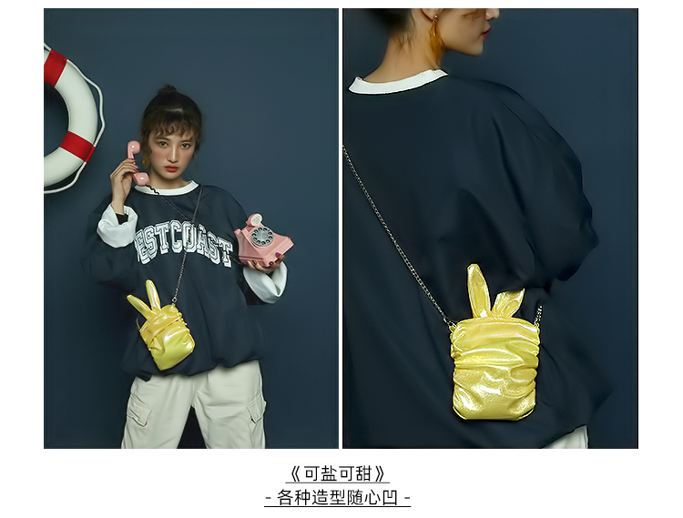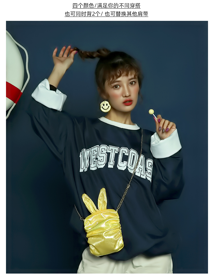 哐花村萌兔单肩斜挎链条手机包-亮黄/青色/亮白/粉红