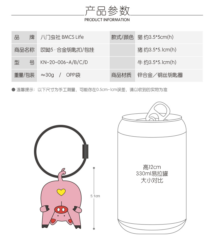 八门虫社哎呦五代多功能动物合金包挂钥匙扣-牛/猫/猪