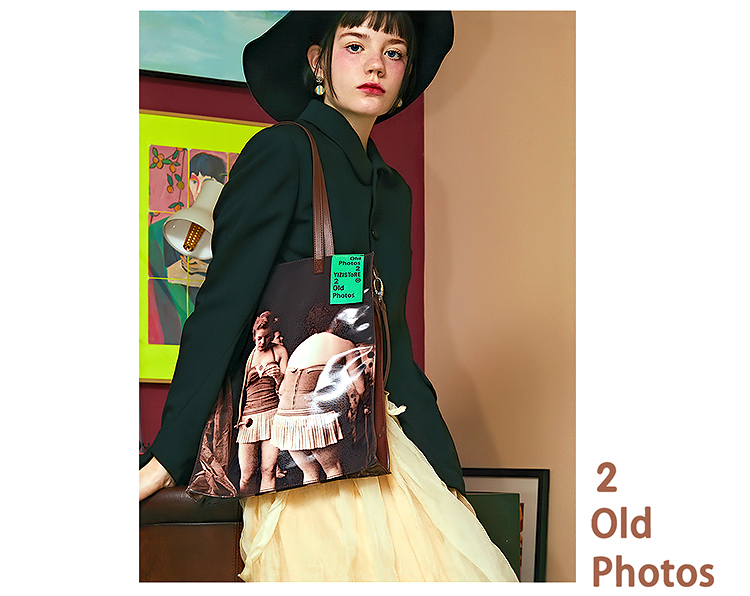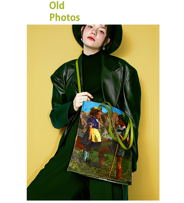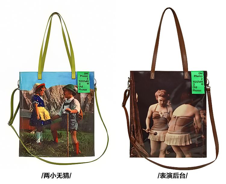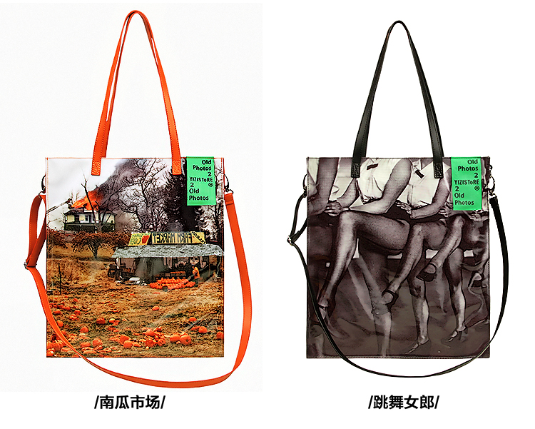 YIZISTORE复古照片印花防水单肩包-两小无猜/表演后台/南瓜市场/跳舞女郎