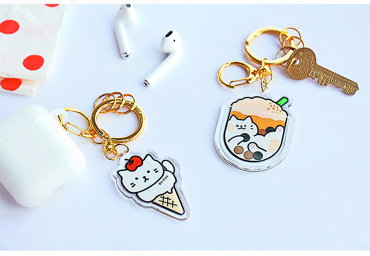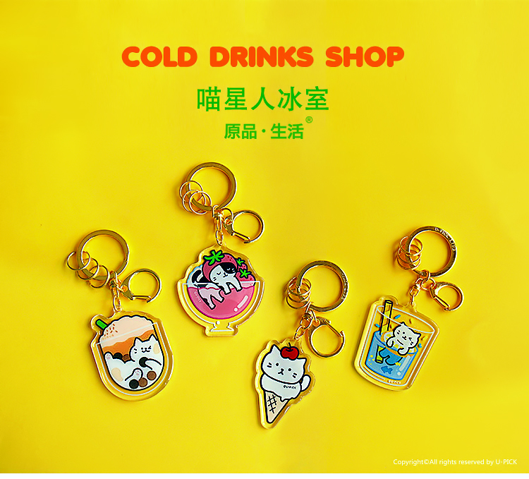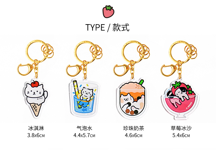 原品喵星人冰室亚克力钥匙扣挂饰-冰淇淋/气泡水/珍珠奶茶/草莓冰沙