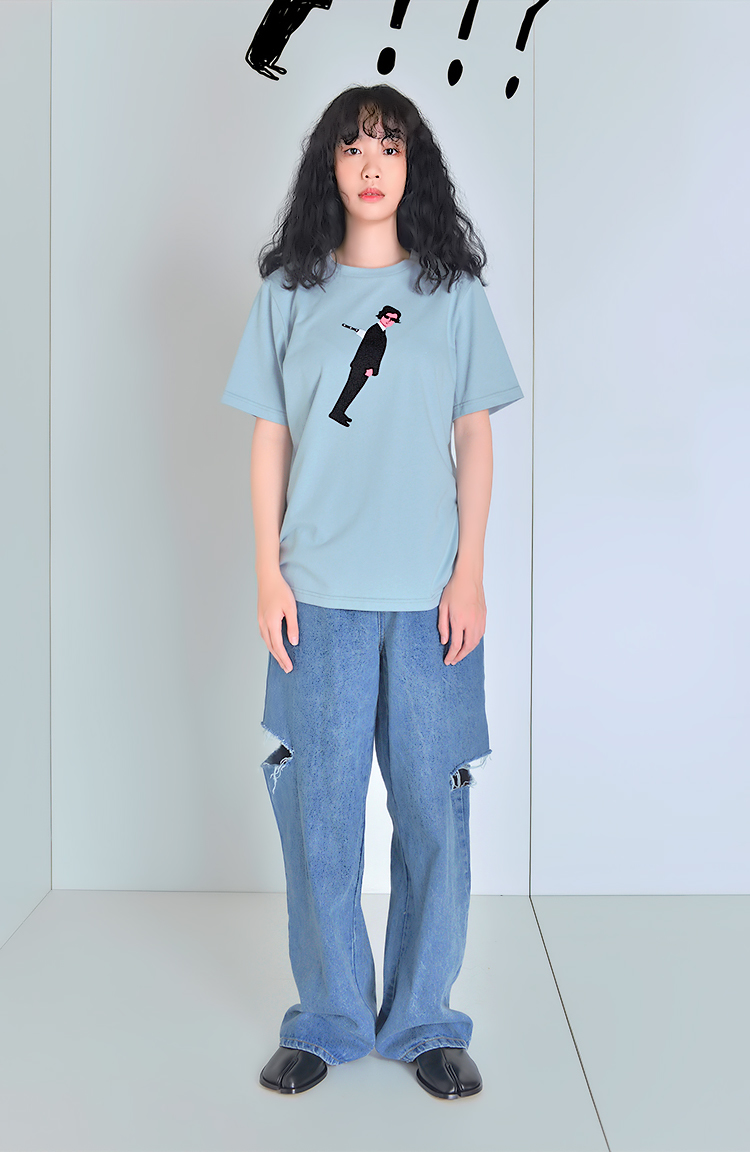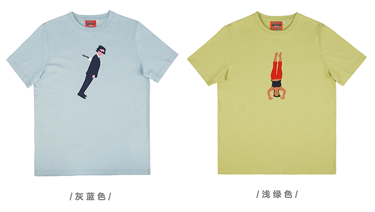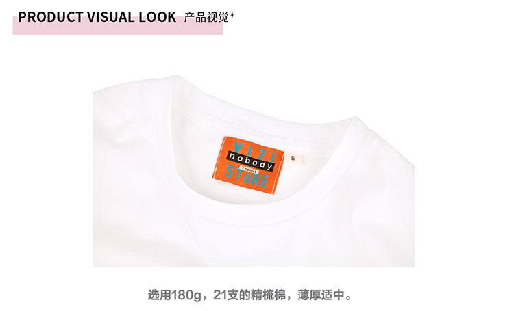 YIZI-Nobody纯棉印花T恤-白色/灰蓝色/浅绿色/浅紫色