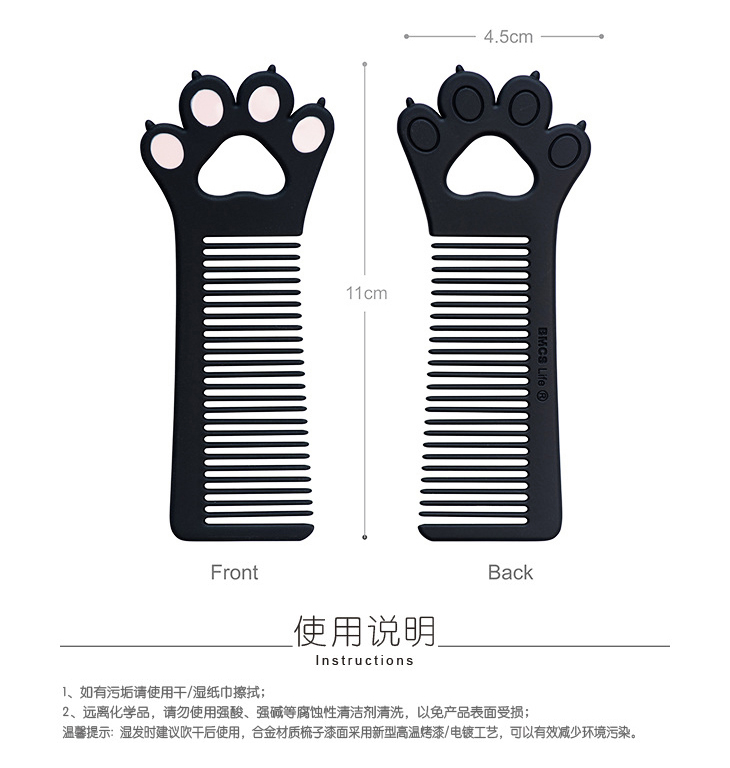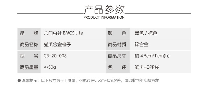 八门虫社猫爪合金便携梳子-棕色/黑色