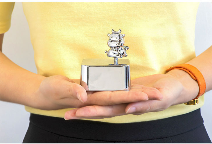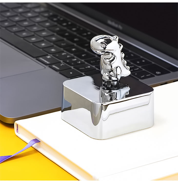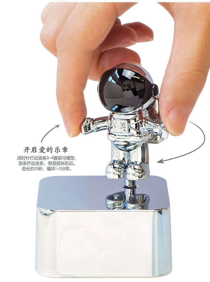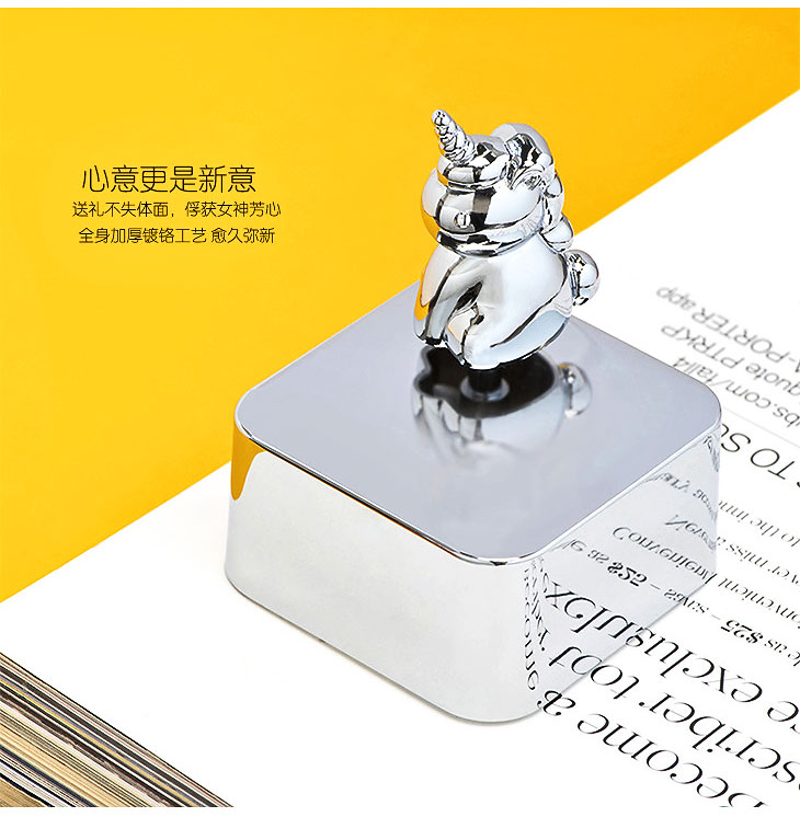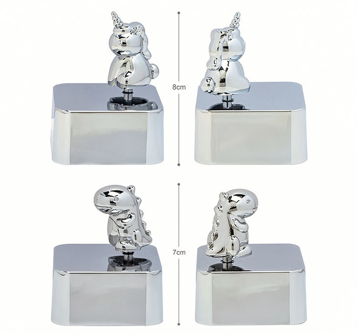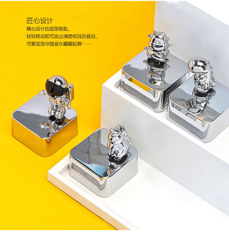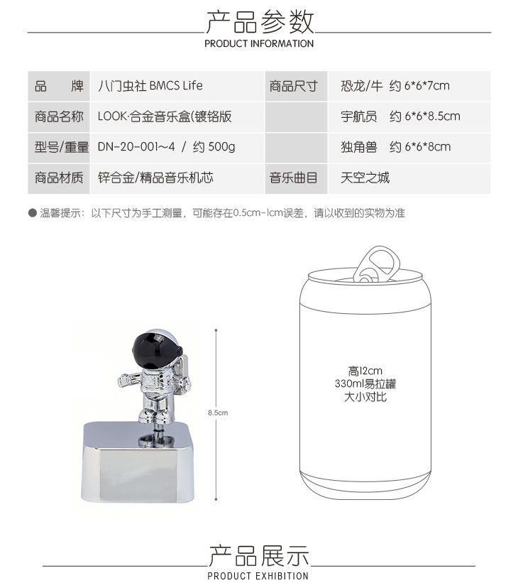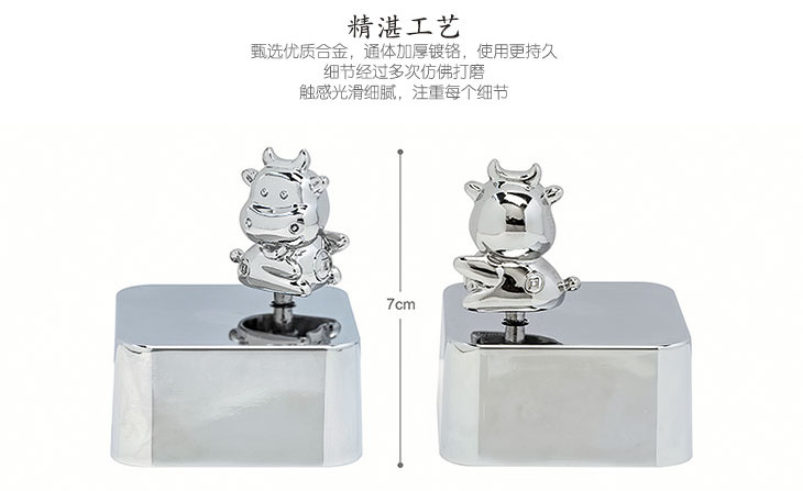 八门虫社动物镀铬方形音乐盒-牛/恐龙/宇航员/独角兽