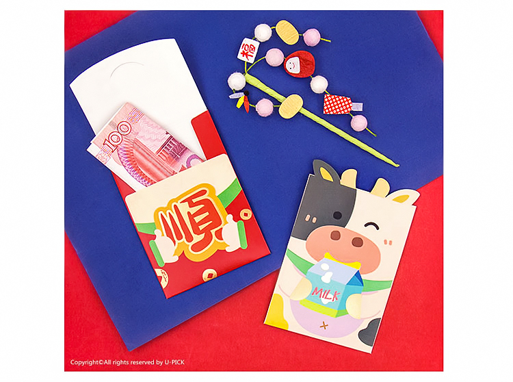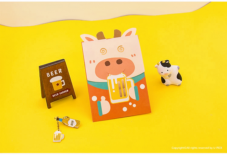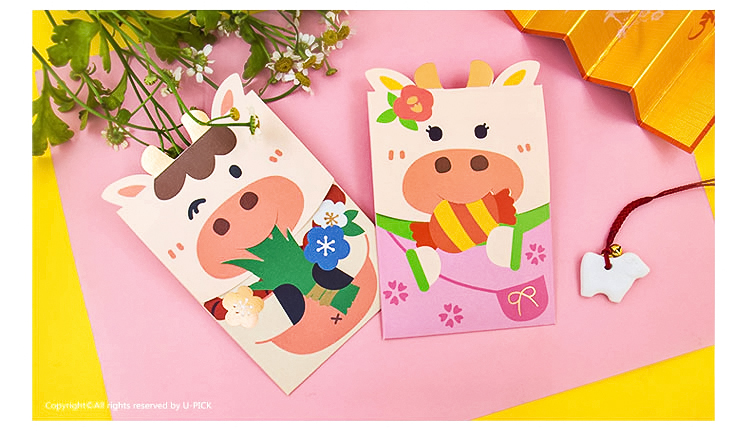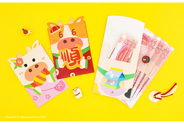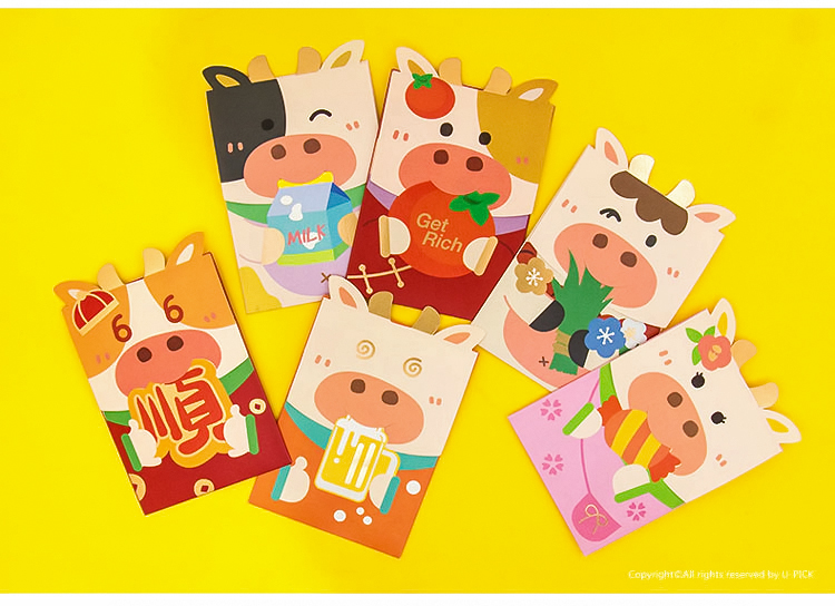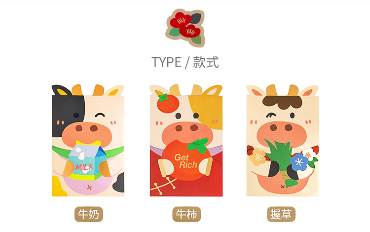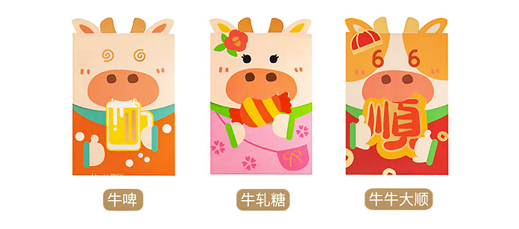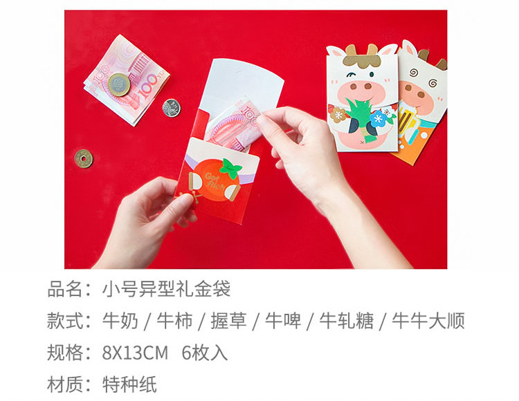 原品牛年异形小号礼金袋(六枚入)-牛奶/牛柿/握草/牛啤/牛轧糖/牛牛大顺