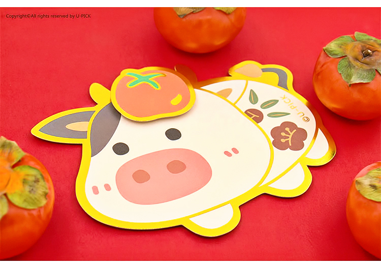 原品牛年彩色小门贴-牛柿大吉/牛年能瘦/好运连连/年年有余