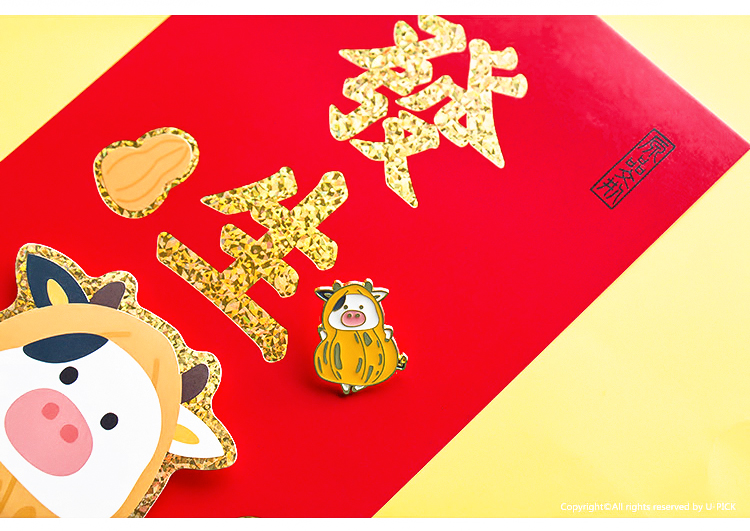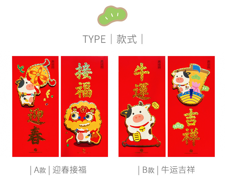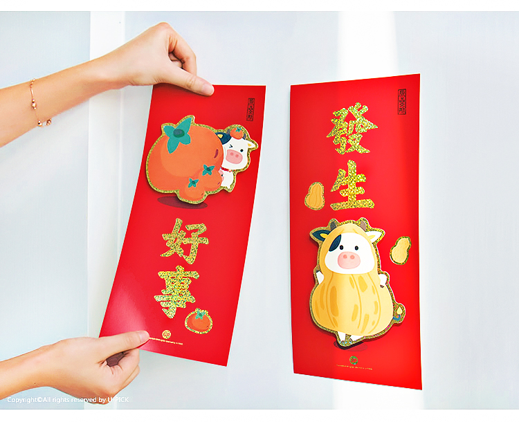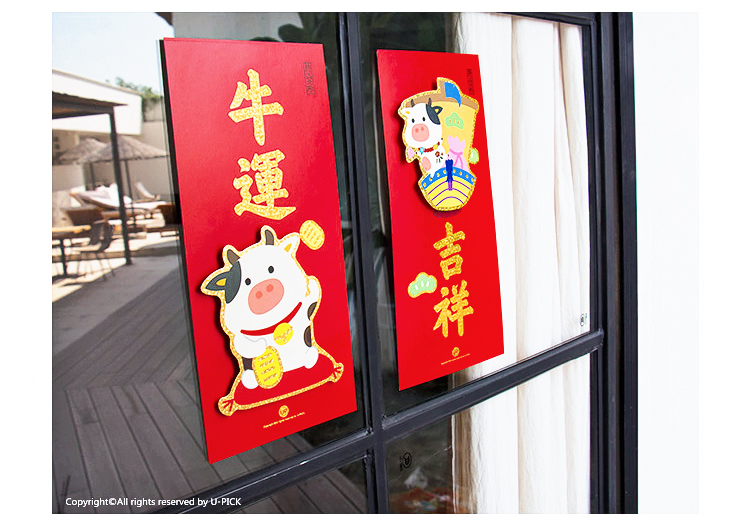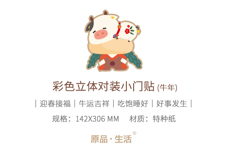 原品牛年彩色立体对装小门贴-迎春接福/牛运吉祥/吃饱睡好/好事发生