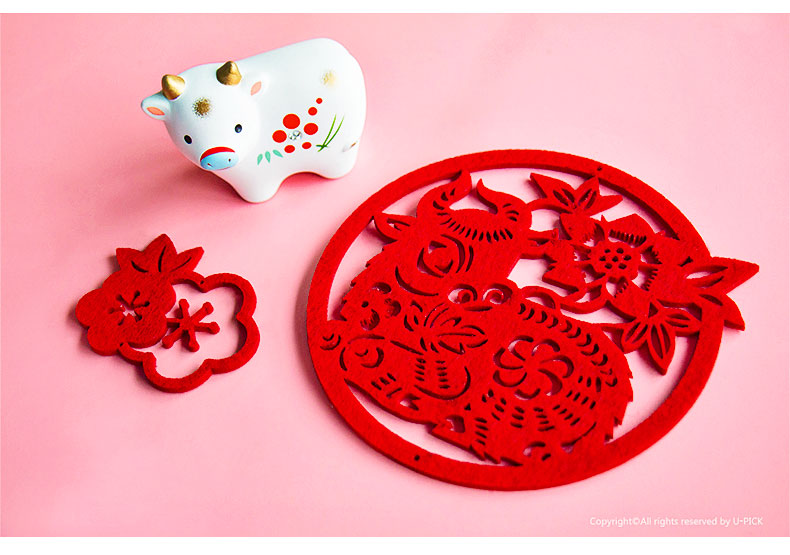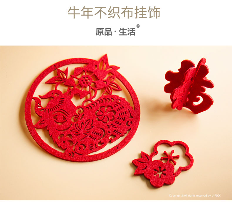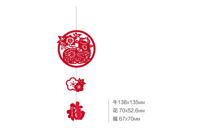 原品牛年异形立体对装门贴-牛年有鱼/迎春接福/牛气招财/吉祥福牛