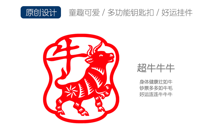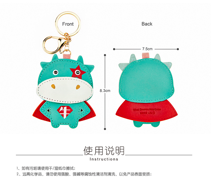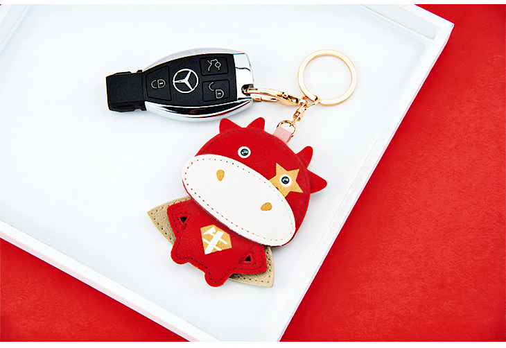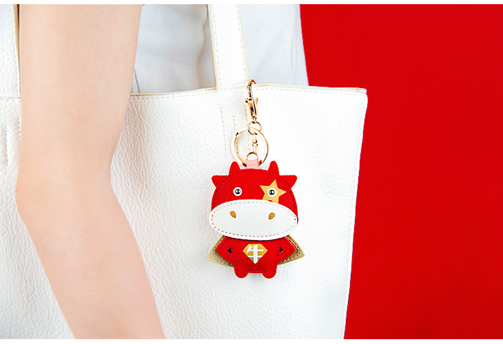 八门虫社牛年吉祥语PU钥匙扣包挂-牛/平安/招财/好运/喜乐