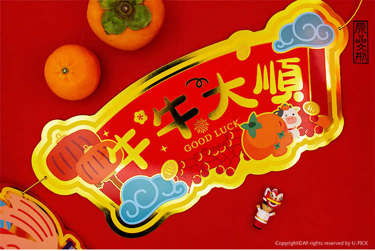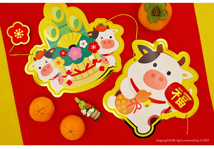 原品牛年异形对装门贴-牛运聚吉/福牛招福/福牛暴富