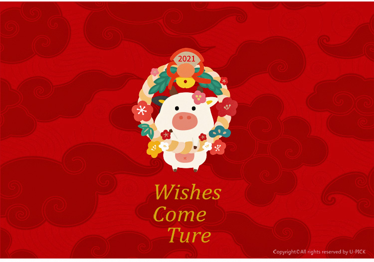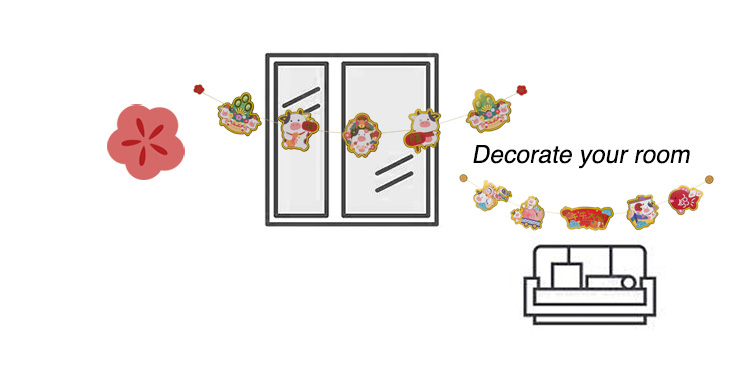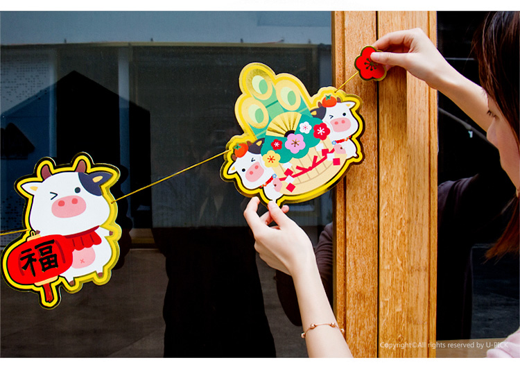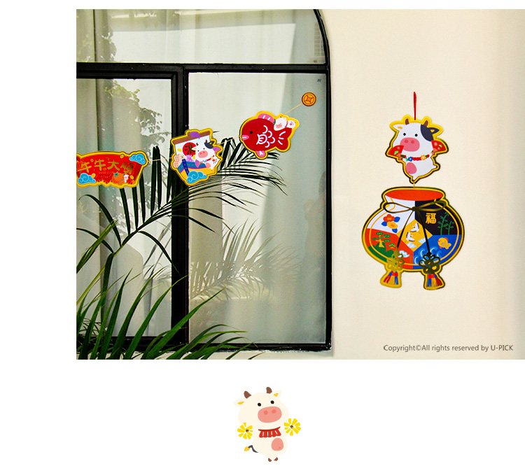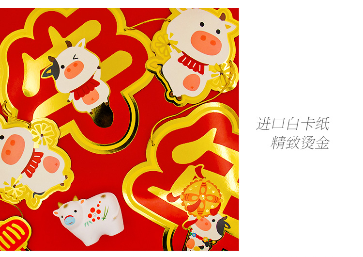 原品牛年对装纸卡挂串-福星高照/招财进宝/万事如意