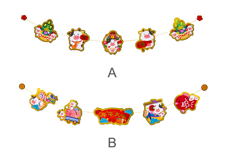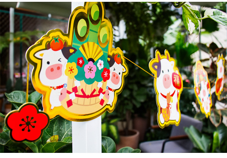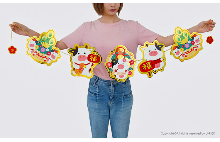 原品牛年造型纸卡挂串-福牛贺岁/牛牛大顺/牛年忘烦