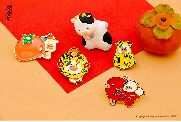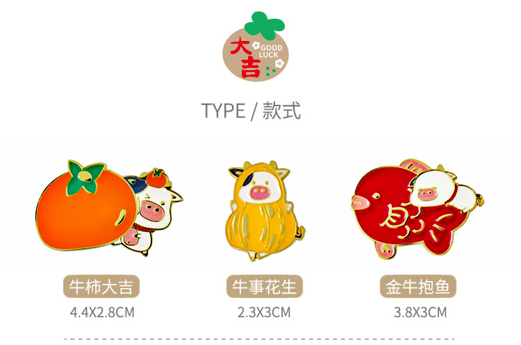 原品Happy牛Year胸针-牛摆/牛事花生/牛柿大吉/金牛抱鱼