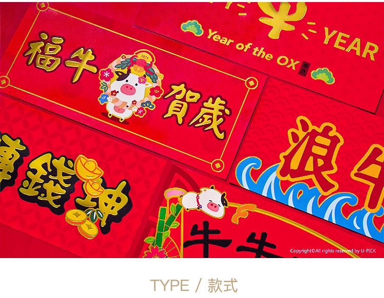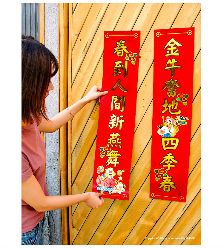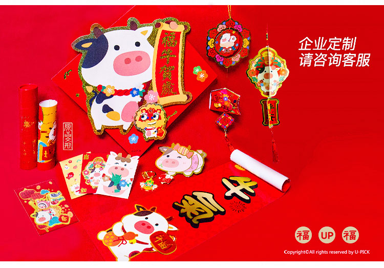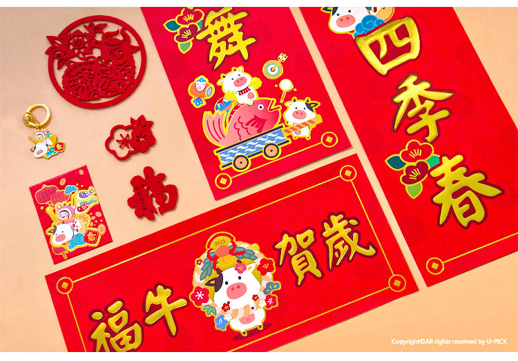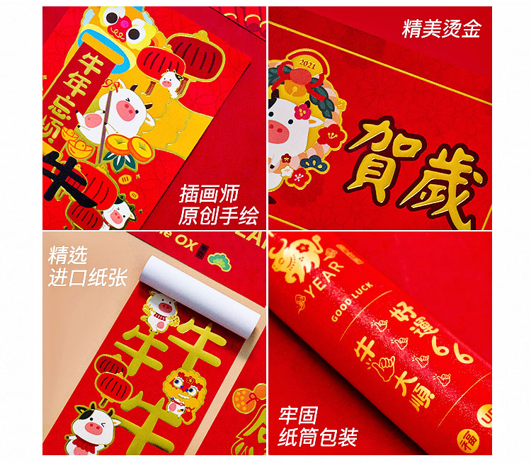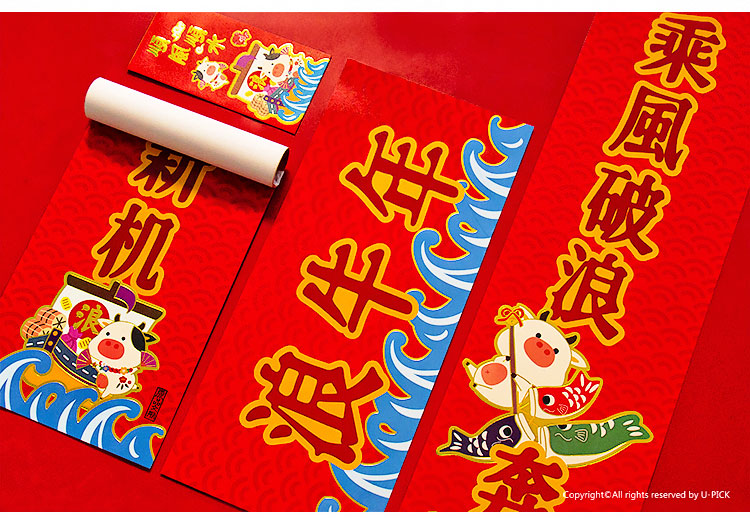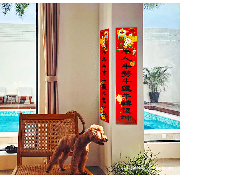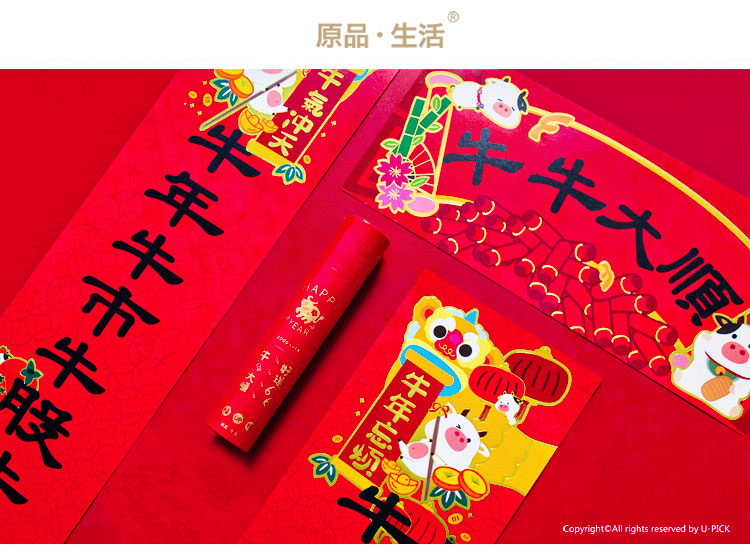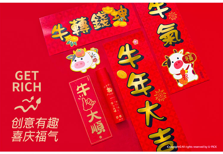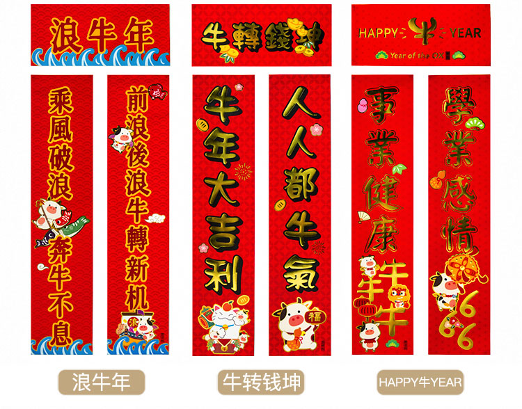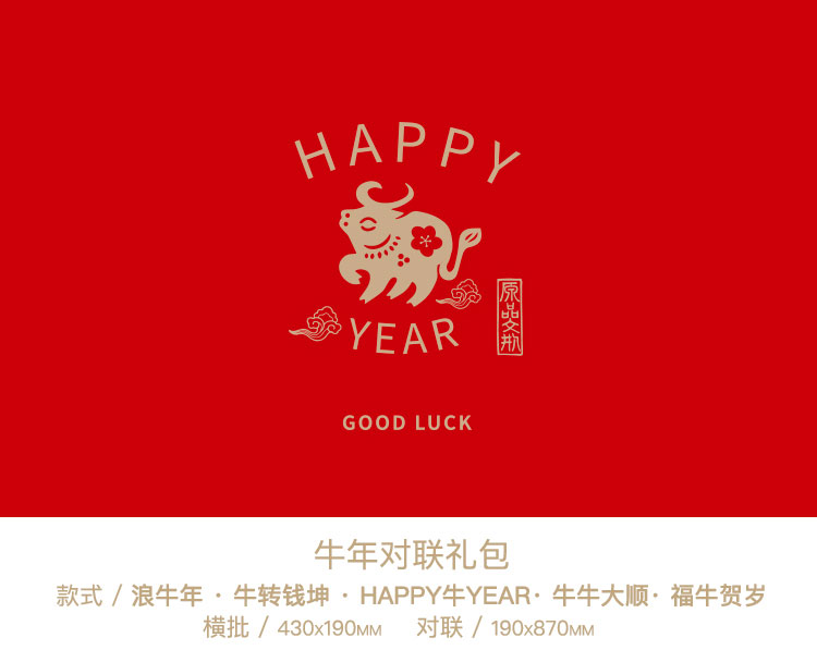 原品牛年彩色对联礼包-浪牛年/牛转钱坤/Happy牛Year/牛牛大顺/福牛贺岁