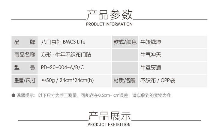 八门虫社牛年不织布门贴-牛转钱坤/牛气冲天/牛运亨通