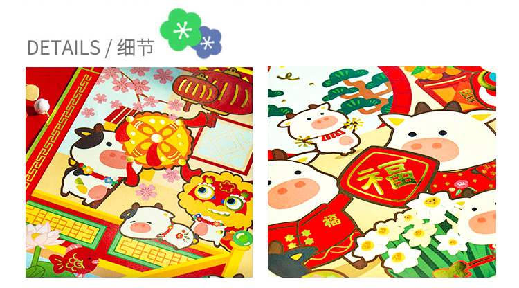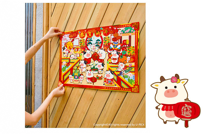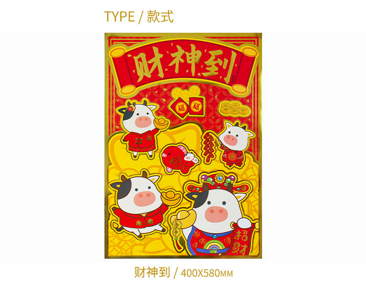原品牛年吉祥窗花门贴-福A/福B/春/牛