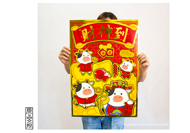 原品牛年异形对装门贴-牛运聚吉/福牛招福/福牛暴富