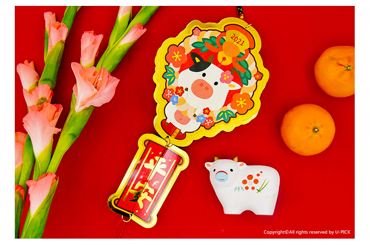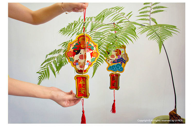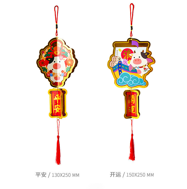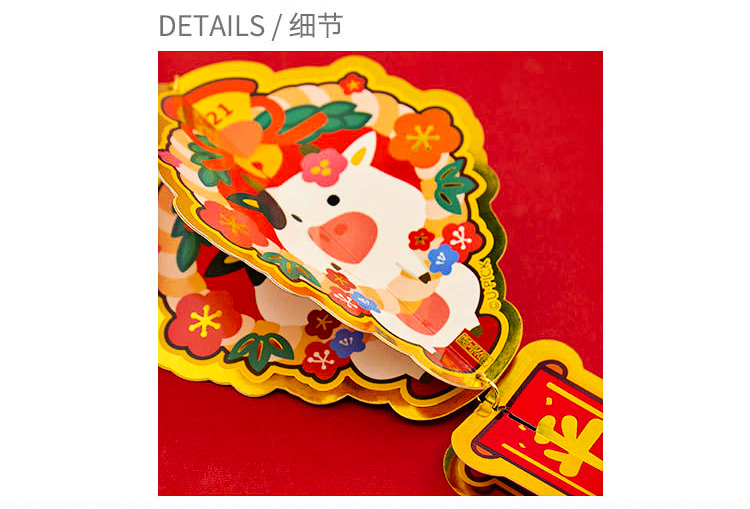 原品牛年对装纸卡挂串-福星高照/招财进宝/万事如意