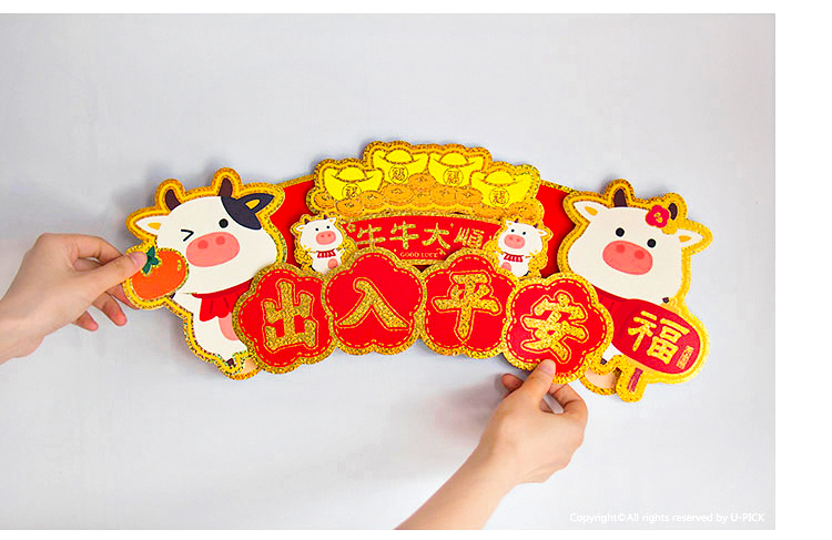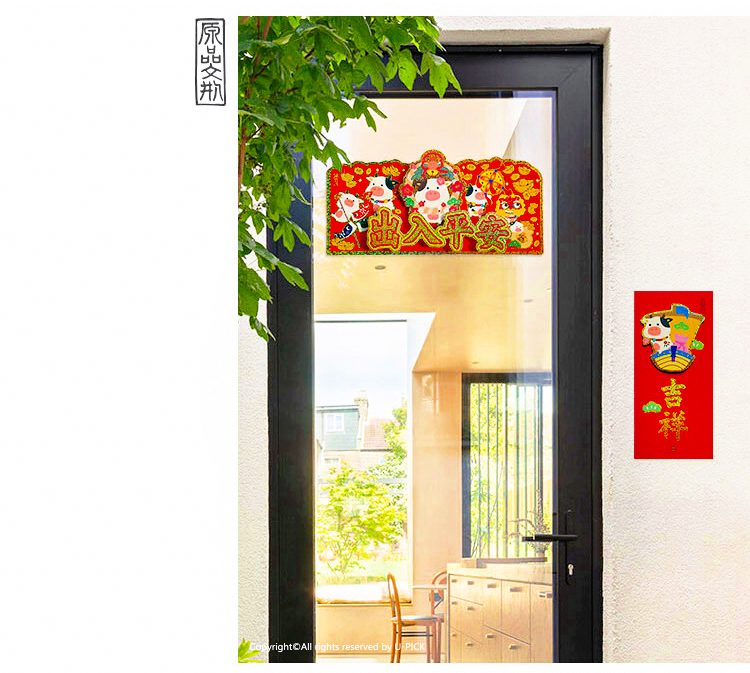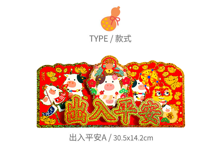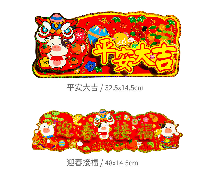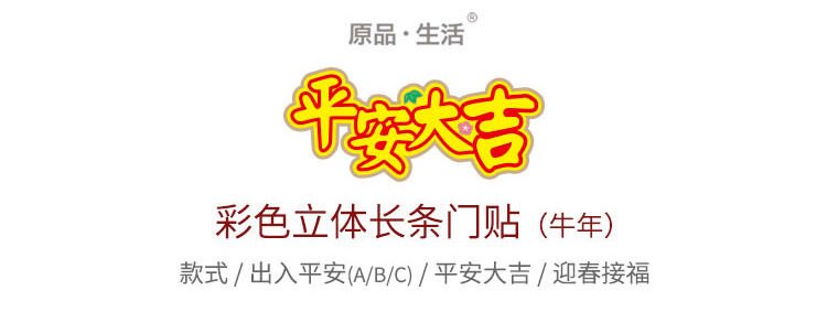 原品牛年彩色立体横幅门贴-出入平安A/出入平安B/出入平安C/平安大吉/迎春接福