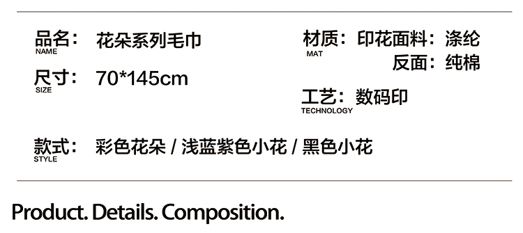 YIZI花朵系列浴巾-浅蓝紫色小花/彩色花朵/黑白小花