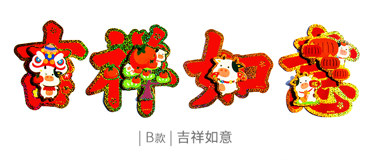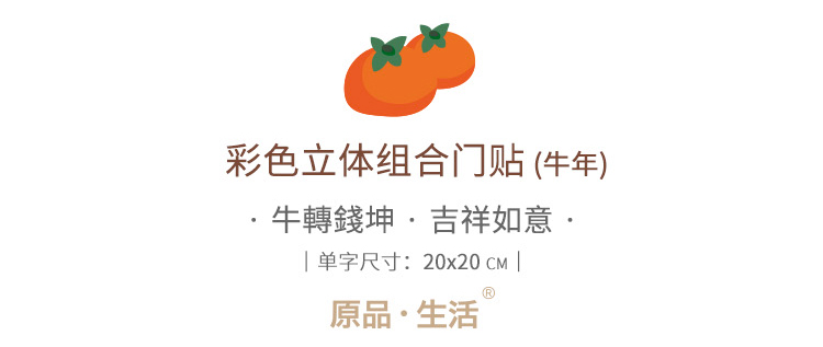 原品牛年彩色立体对装门贴-牛牛大顺/心想事成/日日好日/万事如意
