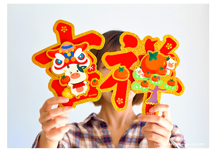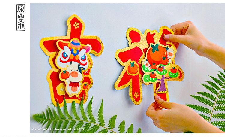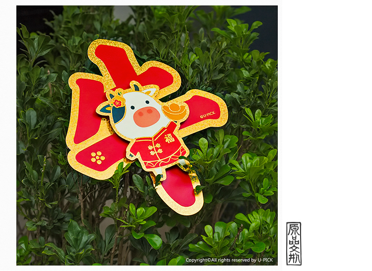 原品牛年异形立体对装门贴-牛年有鱼/迎春接福/牛气招财/吉祥福牛