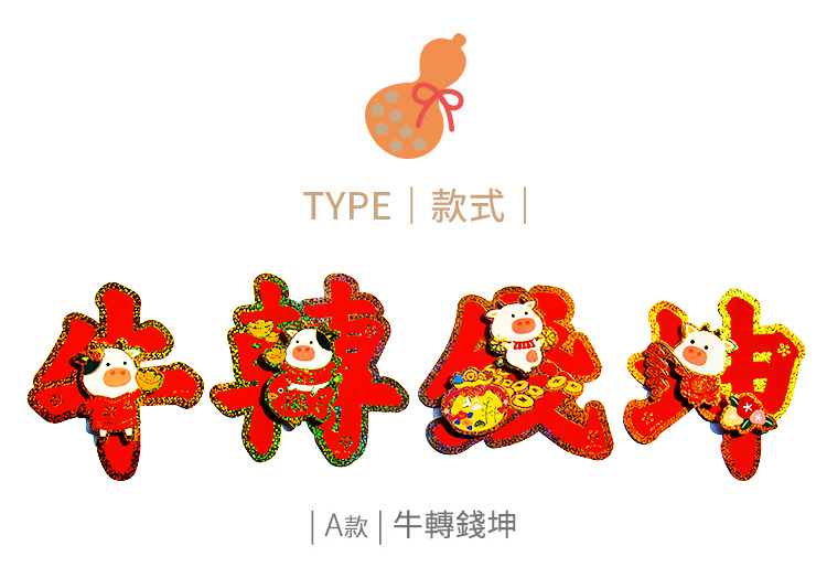 原品牛年彩色立体组合门贴-牛转钱坤/吉祥如意