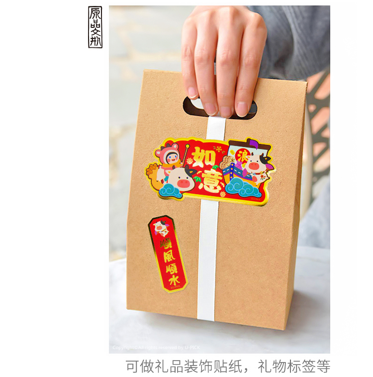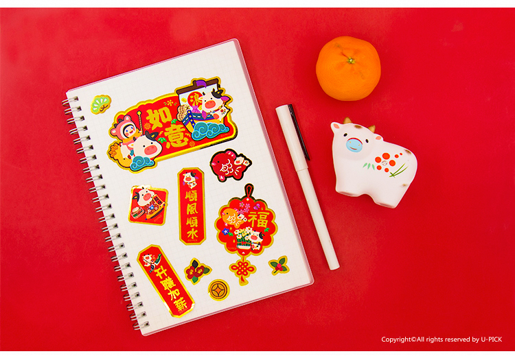原品牛年异形立体对装门贴-牛年有鱼/迎春接福/牛气招财/吉祥福牛
