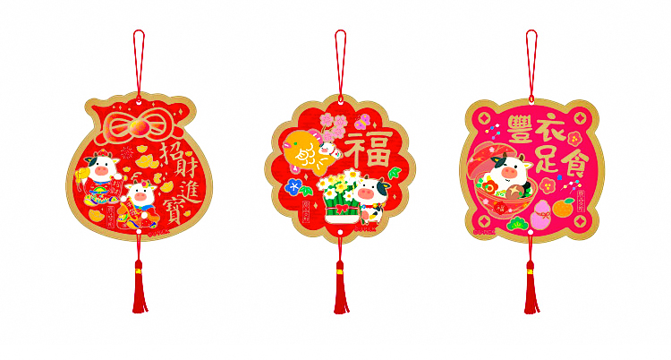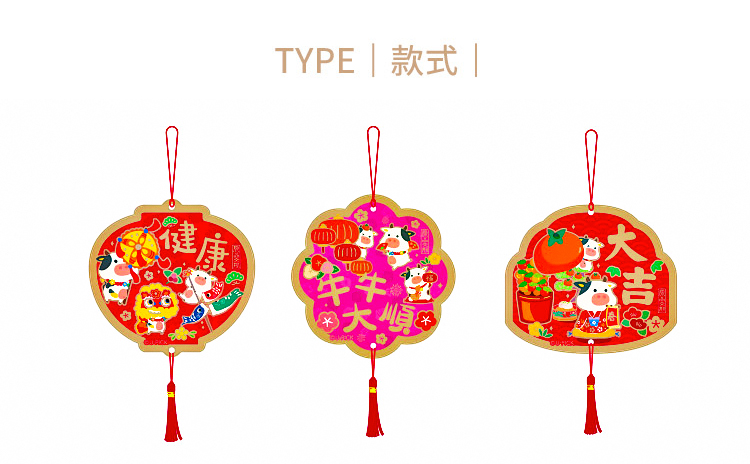 原品虎年造型纸卡挂饰-迎春接福/福虎生风/五福临门