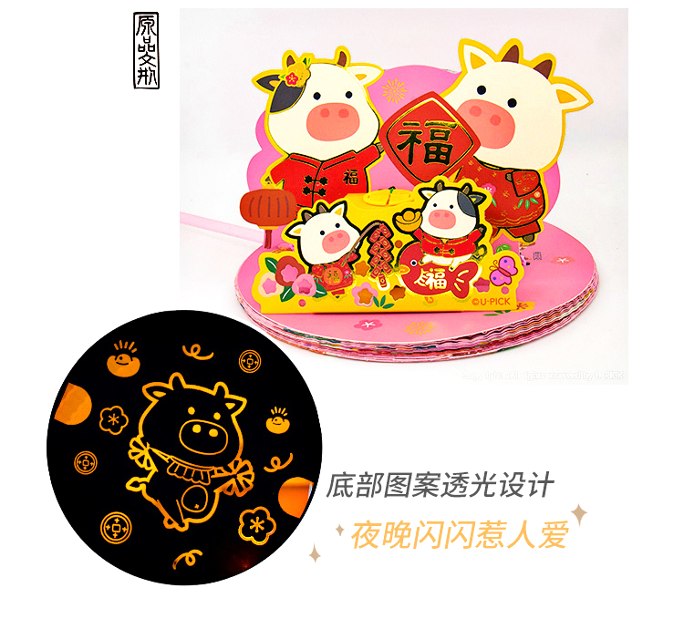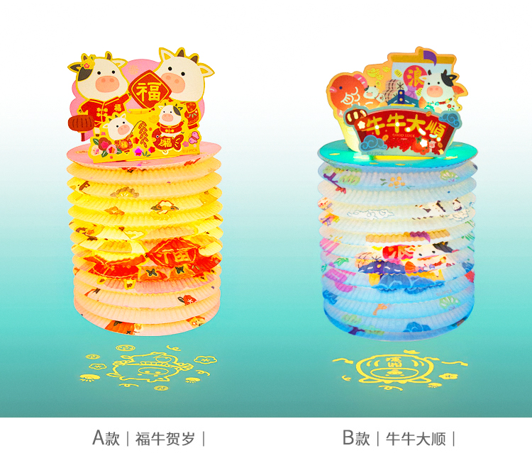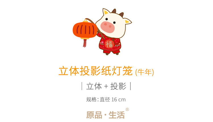 原品牛年立体投影纸灯笼-福牛贺岁/牛牛大顺