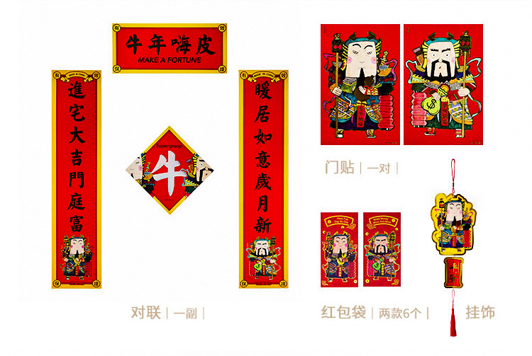 原品插画门神系列-门贴/礼金袋/挂饰/对联