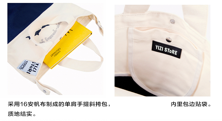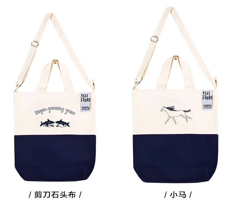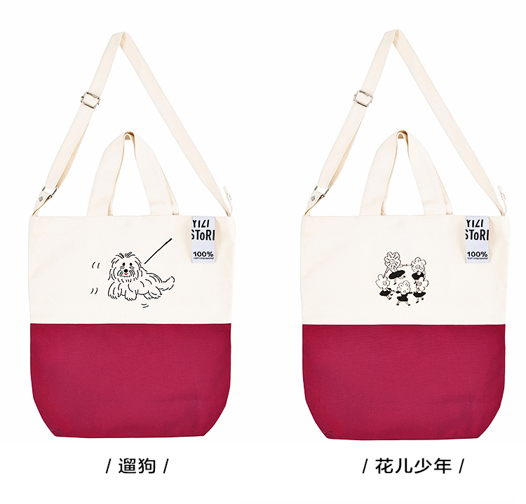 YIZI插画印花帆布单肩包-剪刀石头布/小马/遛狗/花儿少年