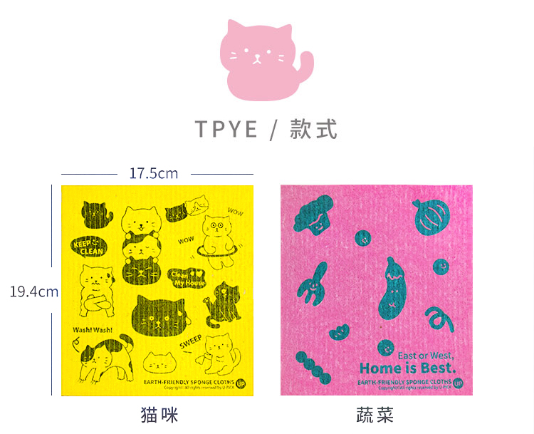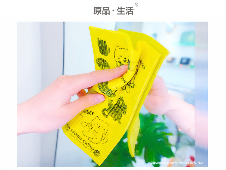 原品进口木浆棉环保百洁抹布-猫咪/蔬菜/劳动最光荣/发财