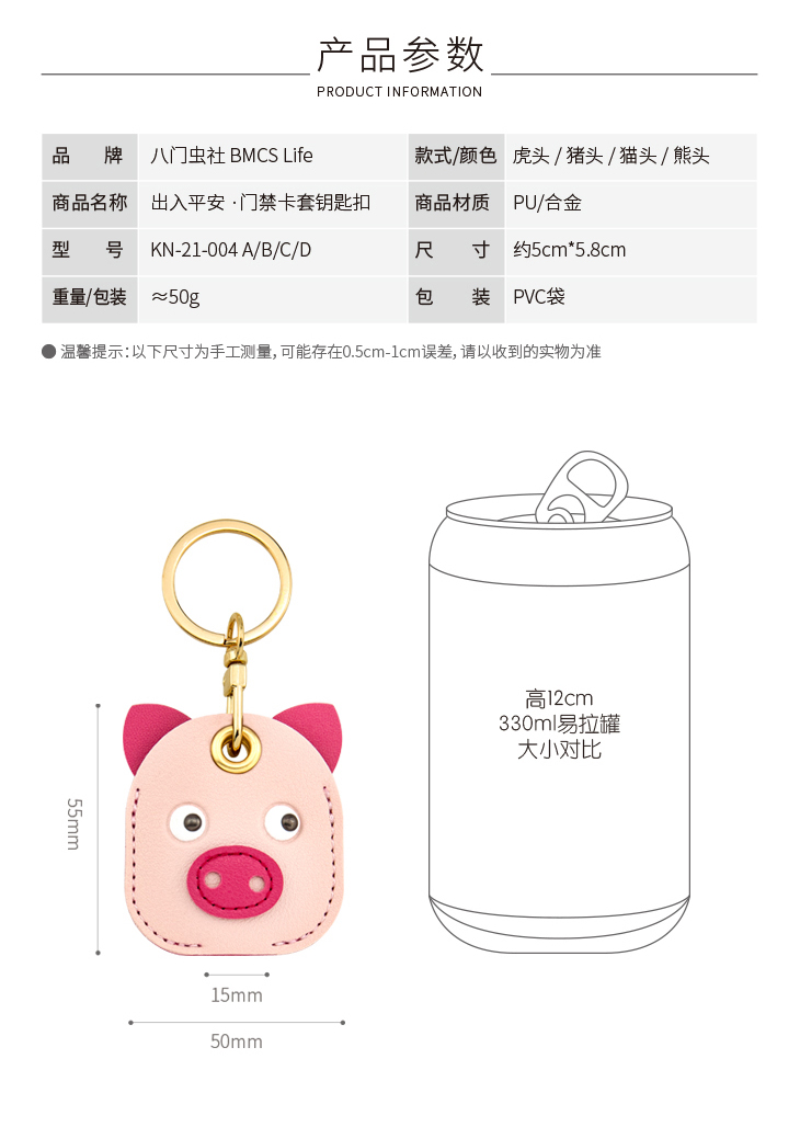 八门虫社出入平安门禁卡套钥匙头套-虎头/猪头/猫头/熊头