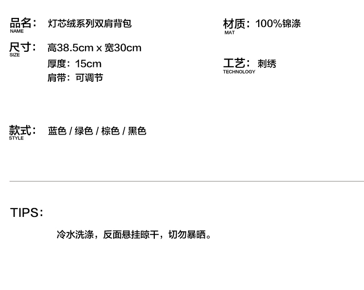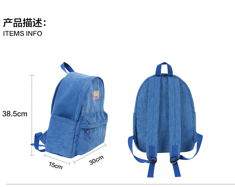 YIZI灯芯绒系列双肩包-黑色/蓝色/绿色/棕色
