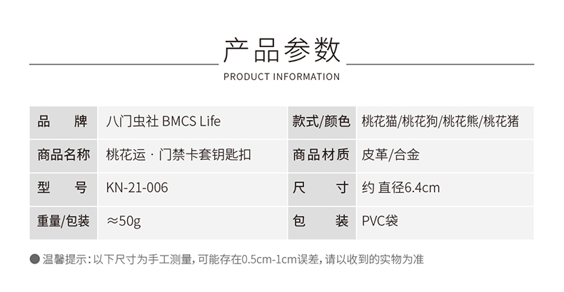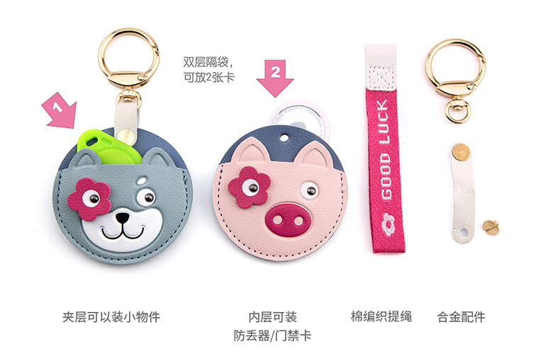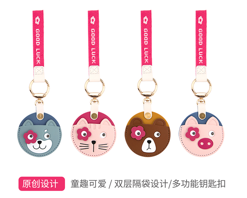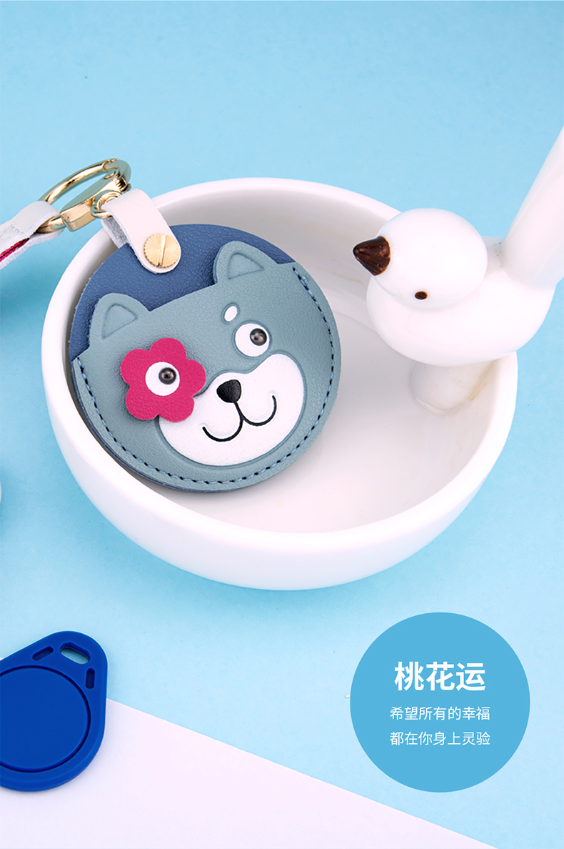 八门虫社桃花运皮革门禁卡提绳钥匙扣-桃花猪/桃花熊/桃花猫/桃花狗