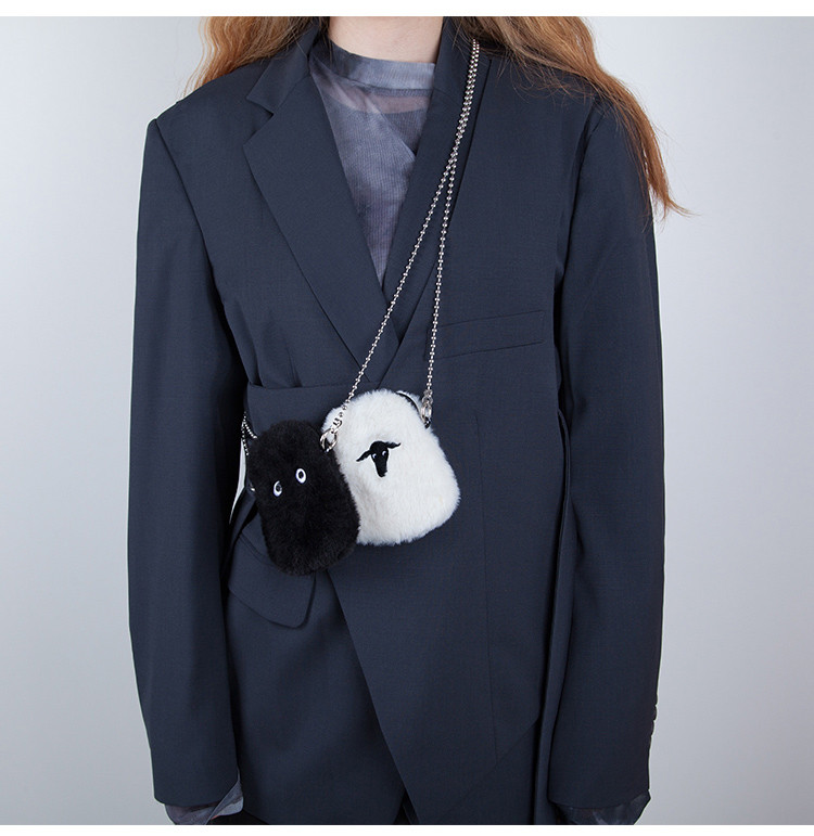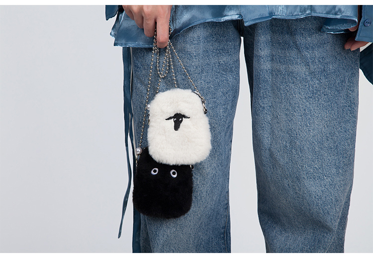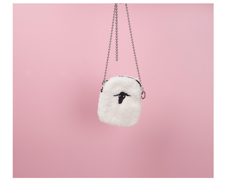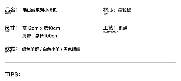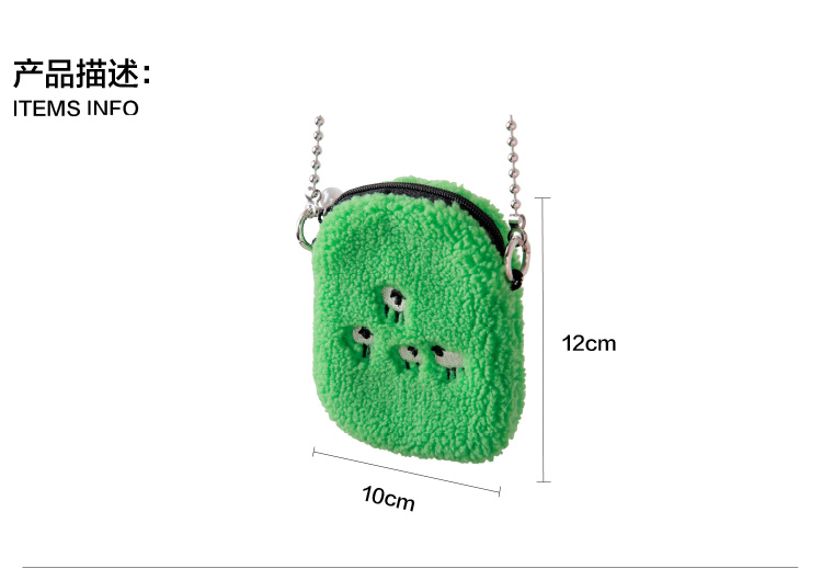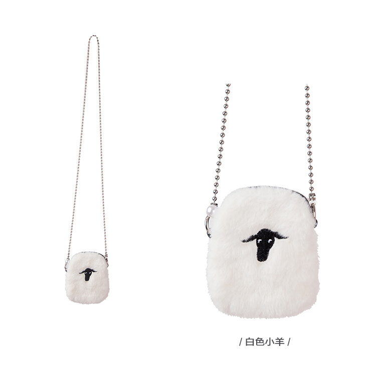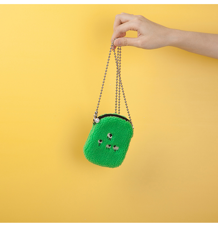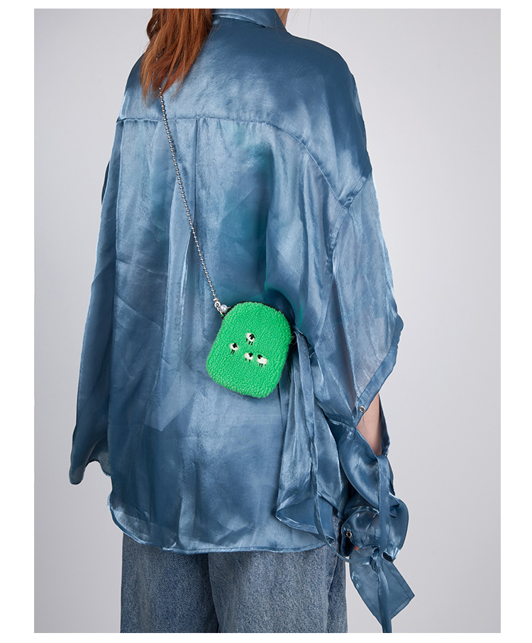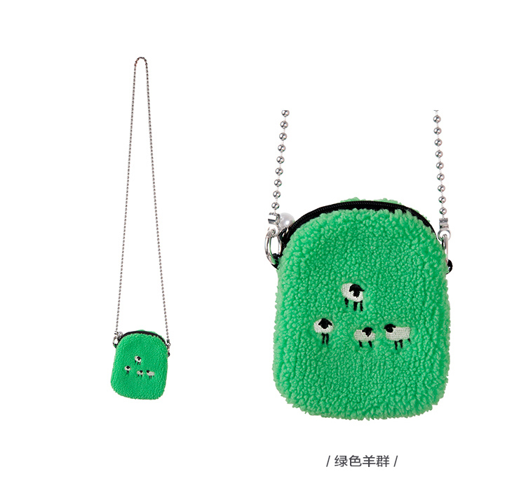 YIZISTORE链条毛绒小单肩斜挎包-白色小羊/黑色眼睛/绿色羊群