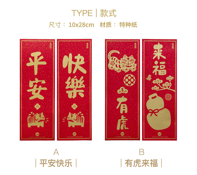 原品虎年小对联-平安快乐/有虎来福/虎运连连/发财大吉