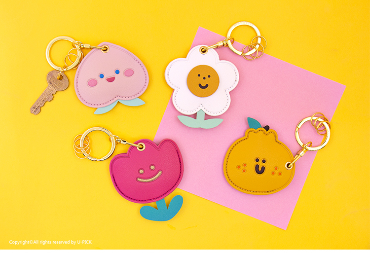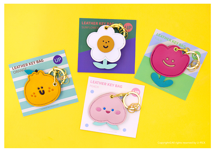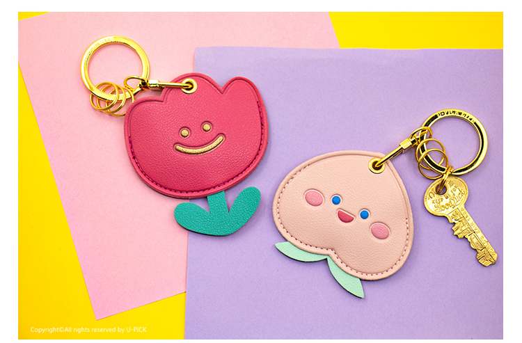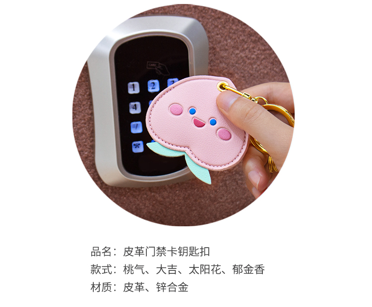 原品皮革门禁卡套钥匙扣-桃气/大吉/太阳花/郁金香