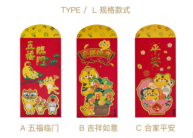 原品虎年小号异型礼金袋-虎星高照/虎禄双全/金虎送财/福虎生風